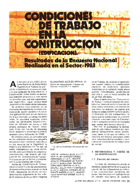 Condiciones de trabajo en la construcción (edificación) : resultados de la encuesta nacional...