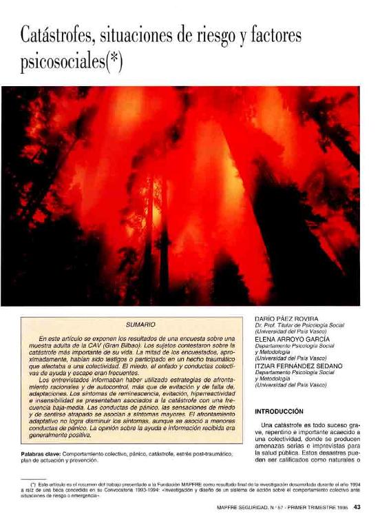 Catástrofes, situaciones de riesgo y factores psicosociales