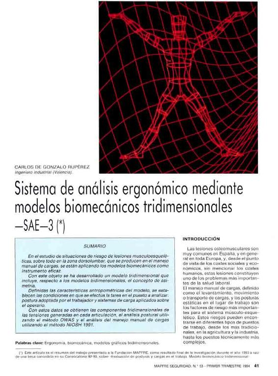 Sistema de análisis ergonómico mediante modelos biomecánicos tridimensionales -SAE-3